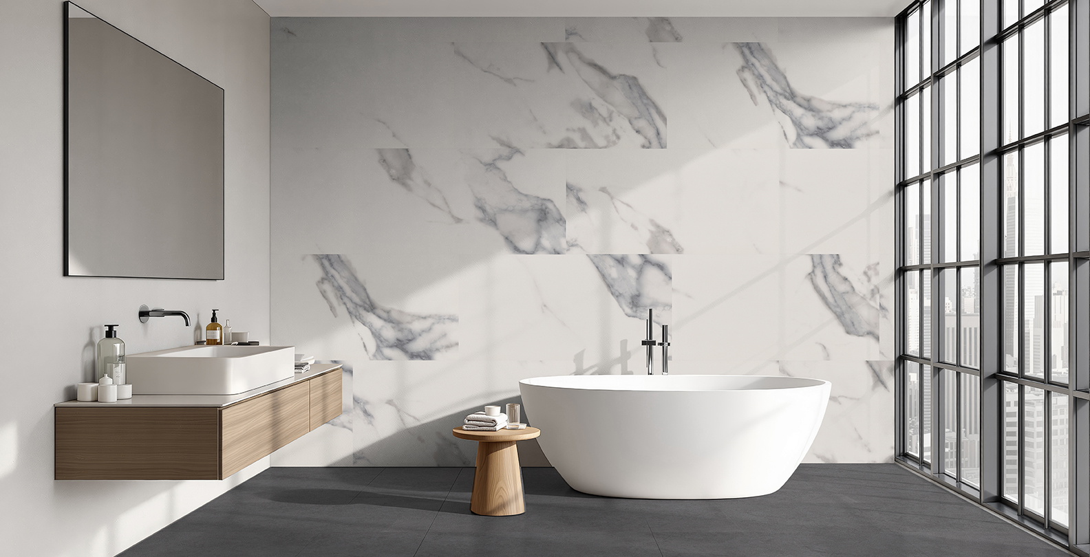 Aquastep Tiles are available in two formats, 30.5 × 61 cm and 47.5 × 95 cm, and have a 4 mm thickness. This makes them ideal for renovations over existing floors or walls. The combination of a strong base, a waterproof construction, and an easy click system makes Aquastep Tiles a smart choice for anyone seeking a high‑quality, yet a low‑maintenance tile solution.